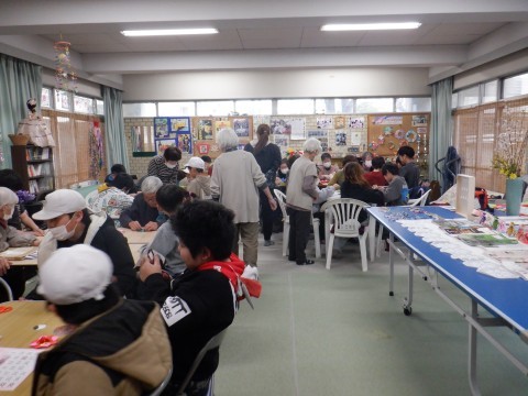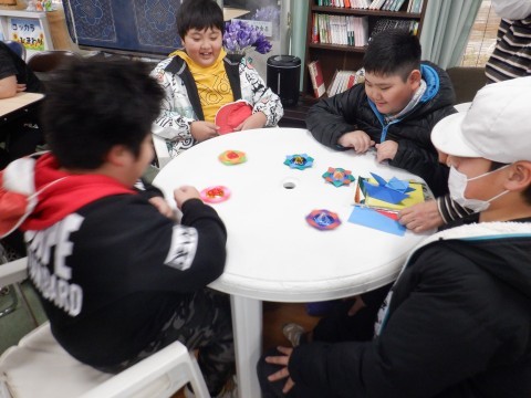 あじさいルームで,地域のみなさまに,前回の交流のお礼のお手紙をお渡ししました。それから,カレンダーや立体のコマのつくり方を教えていただきました。「上手,上手」「いいのができたねぇ」とたくさんほめていただきました。温かく子どもたちを見守ってくださり,今日もありがとうございました。