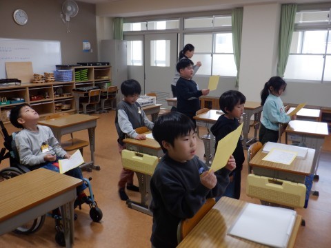 「ありがとう6年生」を歌いました。繰り返し出てくる「ありがとう」の歌い方のコツを教えてもらいました。