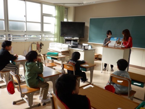 図書委員が1年生のみんなに,読み聞かせをしてくれました。今日の絵本は,「ゆっくりがいっぱい」。気持ちがゆっくりになれる絵本でしたね。