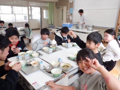 給食の時間 公開日 2026/03/06 更新日 2026/03/06 学校紹介 今日の給食は,ご飯,味噌汁,焼きししゃも,肉じゃが,牛乳でした。焼きししゃもを増やしている人がたくさんいました。おいしくいただきましたね。