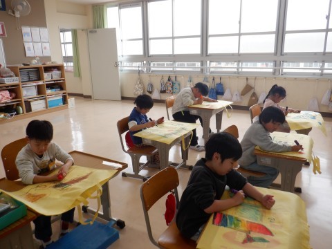 作品バッグにイラストを描きました。好きなキャラクターや思い出を描いていました。