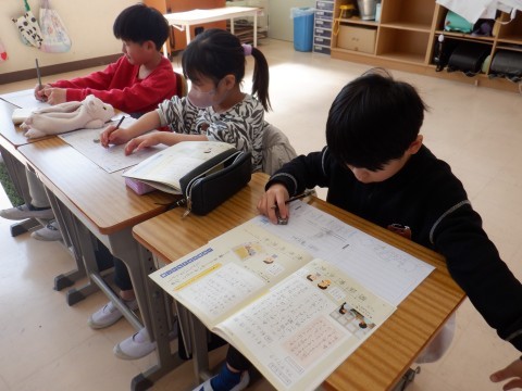 書き方シートに,本の紹介の仕方を練習しました。