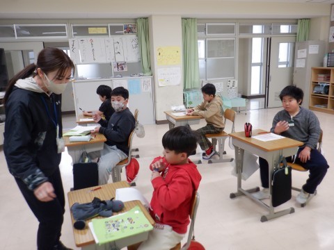 百マス計算をしました。「〇問,間違った」と残念そうにしていましたが,初めてにしてはとてもよくできていましたね。