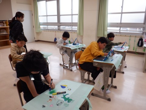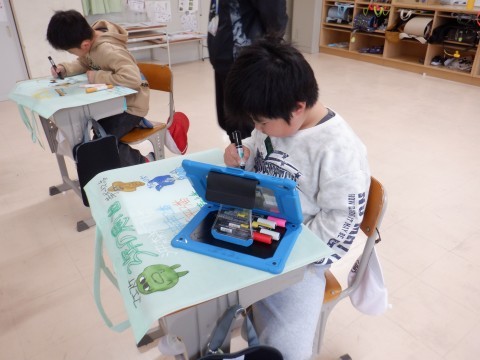 今日も作品袋を作りました。万博に行った思い出を描いている人がいました。3年生の思い出がつまった作品袋になりそうですね。