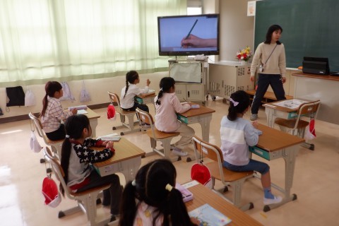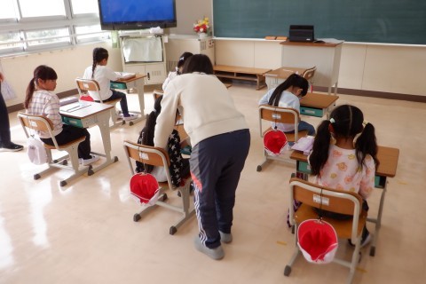 1年生 学習のきまり 公開日 2026/04/09 更新日 2026/04/09 1年 「ぐう(ひとつ),(あし)ぴた,(こし)ぴん」「ぐう,ぴた,ぴん」・・・。声をだして座り方の確認をしています。えんぴつの持ち方も習いました。