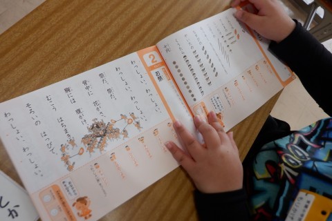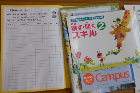 音読カードや漢字ドリルの説明を聞きました。音読の練習もしてみました。じょうずに読めています。
