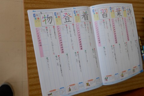 漢字学習ノートの使い方を共有しています。漢字の読みの練習もしました。音読み訓読み,全部おぼえましょう!