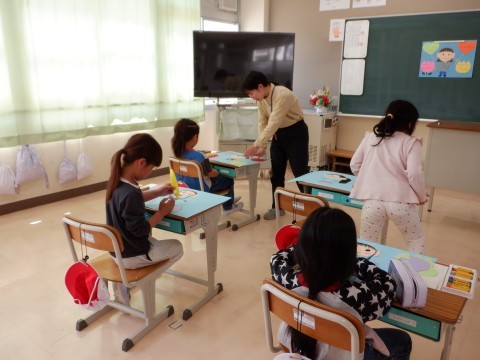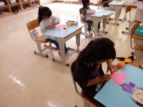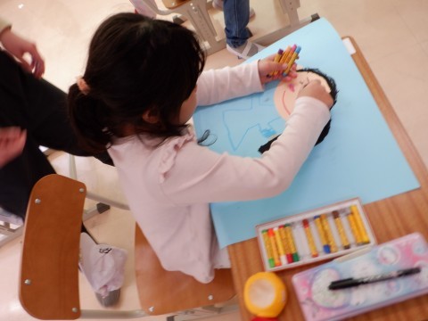 似顔絵をていねいに描いていることやのりの使い方を先生にほめてもらい,とっても嬉しそうにしていました。