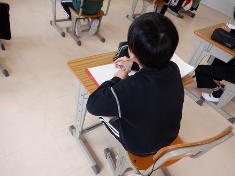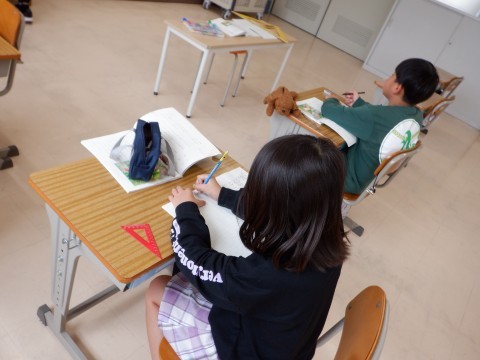 ノートを書くときに下敷きを使っていますか?と友だちに声をかける姿も見られました。