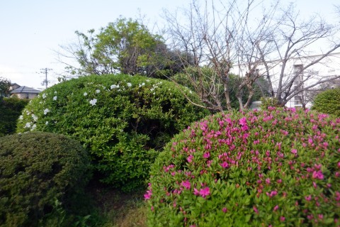 つつじの花がチラホラ咲き始めました。今日は良い天気です!