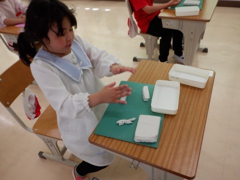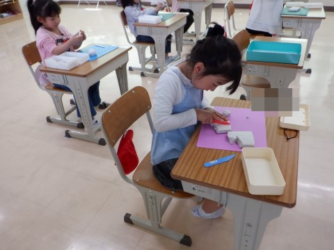 「わたしは,ハンバーグつくるわ。」「おやさいもいれないとね。」とお話ししながら何を作ろうかと想像を広げながら学習を進めていました。
