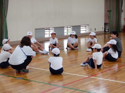 今日は初めての合同体育だったので,まず初めに自己紹介をしました。