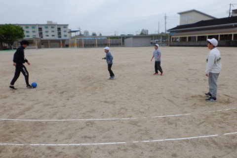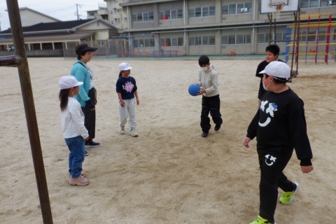 休憩時間に運動場へ出て元気に遊ぶ児童たちの様子です。球技をしたり,遊具で遊んだり,走り回ったり…。