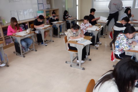 にこにこ学級の児童たちもにこにこの教室で受検しています!