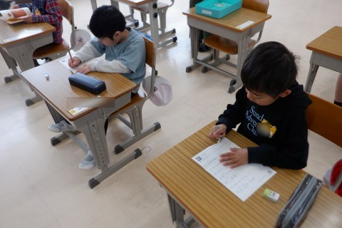 漢字のたしかめテストに取り組んでいます。終わった人は読書です。