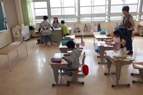 漢字のミニテストをしています。100点をとれている児童もいますよ!