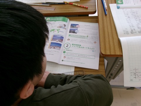 折れ線グラフの学習に入りました。表だけ見ると,変化が分かりにくい・・・そんなときには折れ線グラフを使うとどうかな?と必要性を確認しながら学習を進めていました。