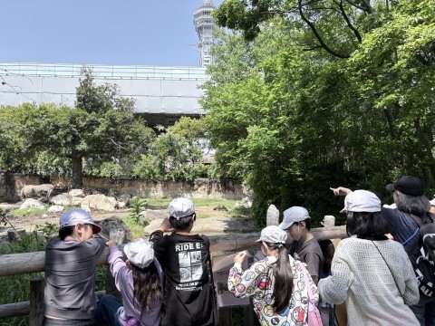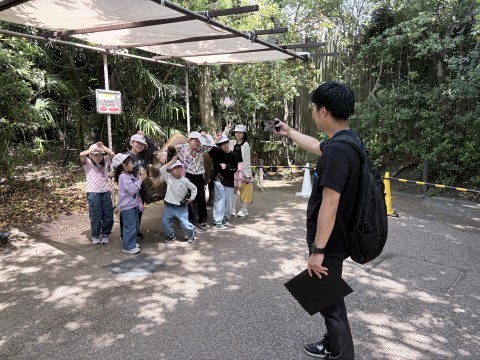 宮タイム班にわかれてオリエンテーションを開始しています。気温が高くなってきていますので、水分補給をしながら園内をまわっています。