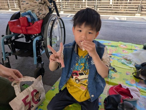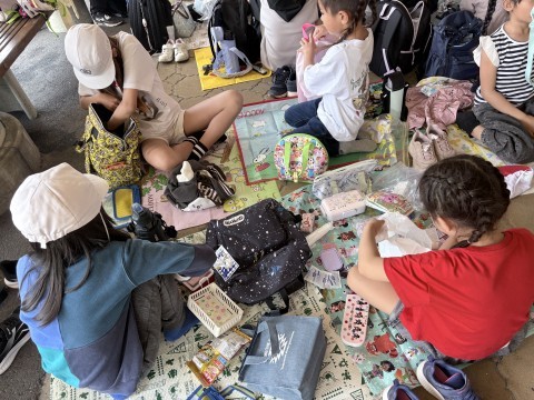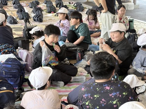 お弁当を食べ終わった児童から、おやつタイムです。
