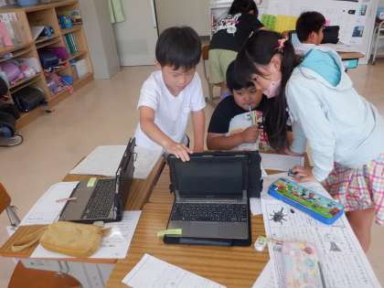生き物新聞を作るために、図書やインターネットを使って調べ、記事にできる内容を集めました。