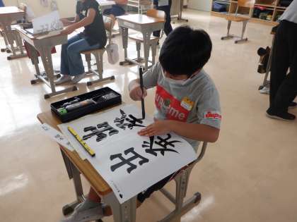毛筆で「出発」と書きました。最後の「はね」に気を付けました。