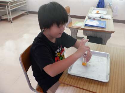 とじこめた水を押して,手ごたえを確かめました。