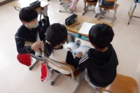 豆乳に、にがりとGDLをそれぞれに混ぜて、お鍋で温め、豆腐をつくりました。硬さや匂い、味を比べてみました。にがりで作ったお豆腐が人気でした。とても貴重な体験ができましたね。