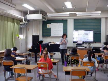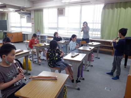 「小さな世界」を練習しました。「レ」の音が初めて出てきました。なめらかにふくことができるように、気を付けました。