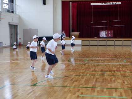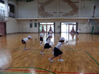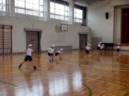 一歩をできるだけ大きく走ったり、小さく走ったりといろいろな走り方をしました。
