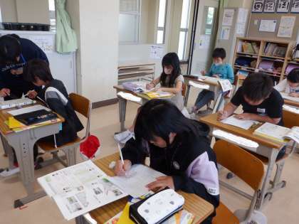 教育実習の先生に教えていただきました。「わたしたちのまち 堺」を使って、地図記号を自分で調べました。