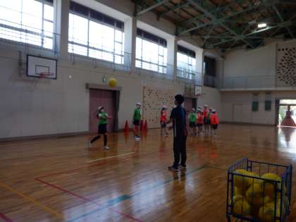 ソフトバレーボールをしました。レシーブやトスの練習をしました。