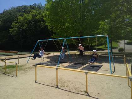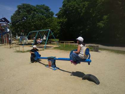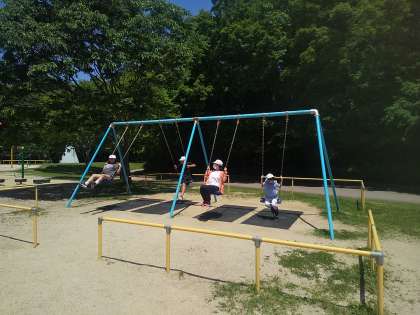 昼食を食べて、元気に遊んでいます。