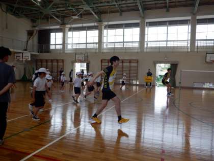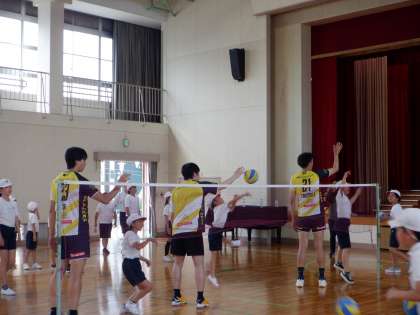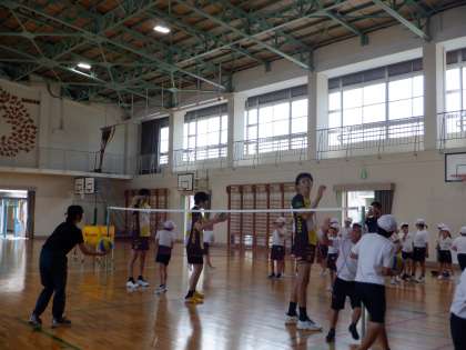 最後はスパイクです。ネットに引っ掛かったり、タイミングが合わなかったりとなかなか難しかったですね。「いいよ!」「おしい、おしい!」と一人ひとりに声をかけていただきました。