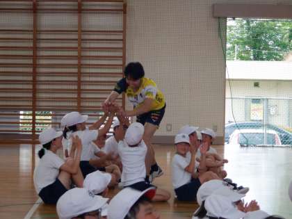 【堺ブレイザーズ】バレーボールの出前授業6 公開日 2024/06/11 更新日 2024/06/11 学校紹介 宮園小の先生たちも加わって、ミニマッチをしました。応援するチームの場所へ移動して、声援を送りました。