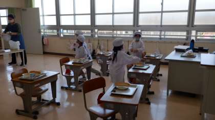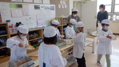 「今日は見に来てね」と言ってくれたので、給食の準備の様子を見に行きました。言葉通り、自分たちで黙々と分担の仕事がきちんとできていて、頼もしさを感じました。