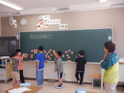 2年生 算数 公開日 2024/06/13 更新日 2024/06/13 2年 10を14こ集めた数はいくつか、10円玉と100円玉を使って考えました。「10が10こで100だから・・・」と友だちに説明していました。