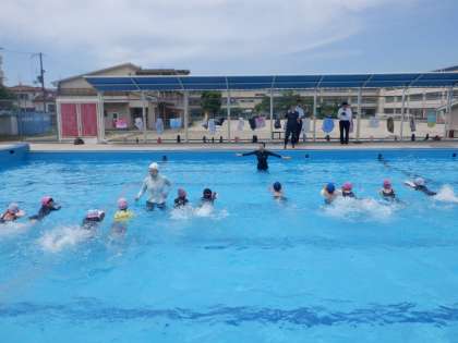 3・4年生 【井村アーティスティックスイミングクラブ】水泳の出前授業4 公開日 2024/06/13 更新日 2024/06/13 中学年 「そうそう、うまいうまい」「いいね、いいね」とコーチは一人ひとりを励ましてくれました。みんなもしっかりアドバイスを聞いて、泳いでいました。