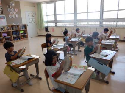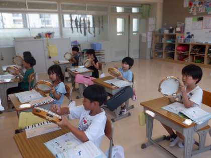 「しろくまのジェンカ」をタンバリンでリズムを打ちながら、歌いました。