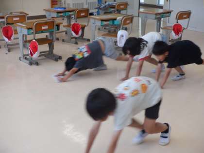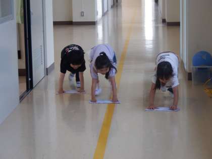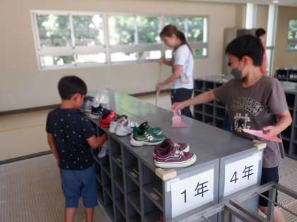 みんな揃って、床拭きを頑張っています。靴箱の掃除も丁寧にしています。