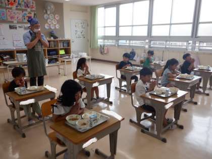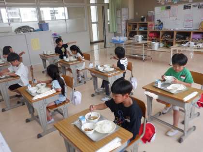 今日の給食は、トマト丼、レタスとうずら卵のスープ、牛乳でした。金曜日は完食しました!今日もモリモリ食べていました。