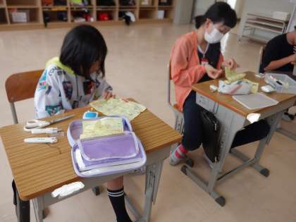 5年生 家庭科 公開日 2024/06/17 更新日 2024/06/17 5年 かがり縫いなど、いろいろな縫い方を練習しました。縫う部分や目的に応じた縫い方ができるといいですね。玉止めにもずいぶん慣れてきました。