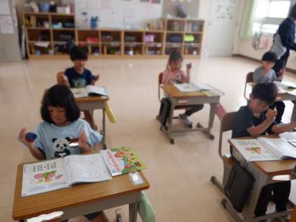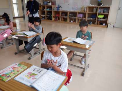 「かたつむり」をカスタネットで「タン・ウン・タン・ウン」等とリズムを取りながら、歌いました。