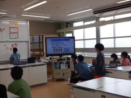 5・6年生 食育の授業2 公開日 2024/06/18 更新日 2024/06/18 高学年 朝ごはんの献立を見て、付け足せばいいメニューを考えました。「野菜が足りてないから、サラダがいる!」「肉類はもう付け足さなくていい」と考え合っていました。バランスのよく、いろいろな食材を取るようにしましょう!