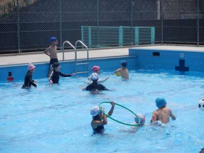 1・2・3年生 学校水泳5 公開日 2024/06/19 更新日 2024/06/19 学校紹介 最後に、水遊びの時間がありました。ボールやフラフープで遊ぶ人もいました。引き続き、バタ足の練習をする人もいました。苦手な人も、できそうなことは頑張ろうとチャレンジしている姿がたくさん見られました。少しずつできることが増えていくといいですね。