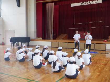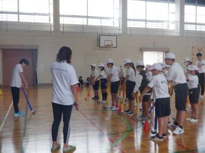 4・5・6年生 【大阪府ホッケー協会】ホッケーの出前授業1 公開日 2024/06/20 更新日 2024/06/20 学校紹介 大阪府ホッケー協会の元日本代表であるコーチの方々にご来校いただき、ホッケーの出前授業がありました。はじめに、ホッケーとはどういう競技なのかを教えていただきました。