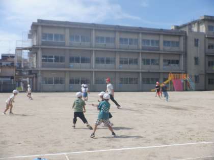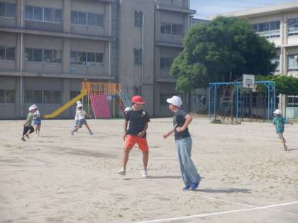 5・6班は鬼ごっこをしました。増え鬼や代わり鬼をして、コートを走り回っていました。