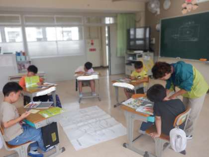 町たんけんに行って、みんなに紹介したい場所について、カードに書きました。