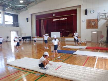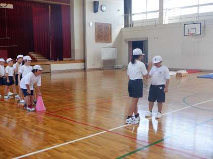 幅跳びをしました。準備運動で、リズムよくケンケンで進む練習をしました。幅跳びでは着地に気を付けて練習しました。