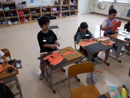 ハロウィンの飾りをつくりました。それぞれにかわいいカボチャができました!