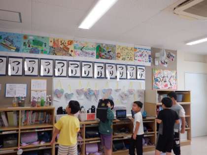 いろいろな学年の作品を鑑賞しました。「いいな」と思った作品を写真に撮りました。